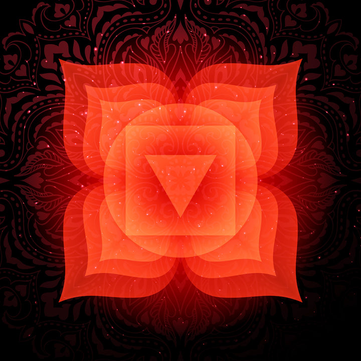 The Root Chakra, Muladhara, is the foundation of the seven chakras, located at the base of the spine. Imagine it like a bright red ball of swirling light. The Root Chakra is your sense of safety, security, and stability in life. It connects you to your physical, and your emotional body. Balancing this first chakra helps you balance all of the other chakras. Think of Muladhara like the roots of a tree. Without it balanced, the rest of the tree (the other chakras) will be much weaker and cannot strongly grow.